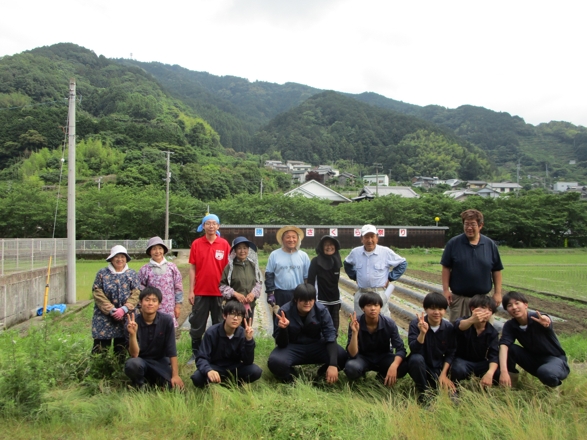 2025年6月23日 19時27分 [教員04]6月13日(金)に勝浦校野菜専攻生徒7名が道の駅ひなの里の観光農園にイベント用のサツマイモを植え付けました。この日は阿波勝浦井戸端塾のみなさんと交流し、約300本の苗を植え付けました。加工用トマトの苗も植え、勝浦校と道の駅が共同開発中の野菜カレーの材料として利用します。